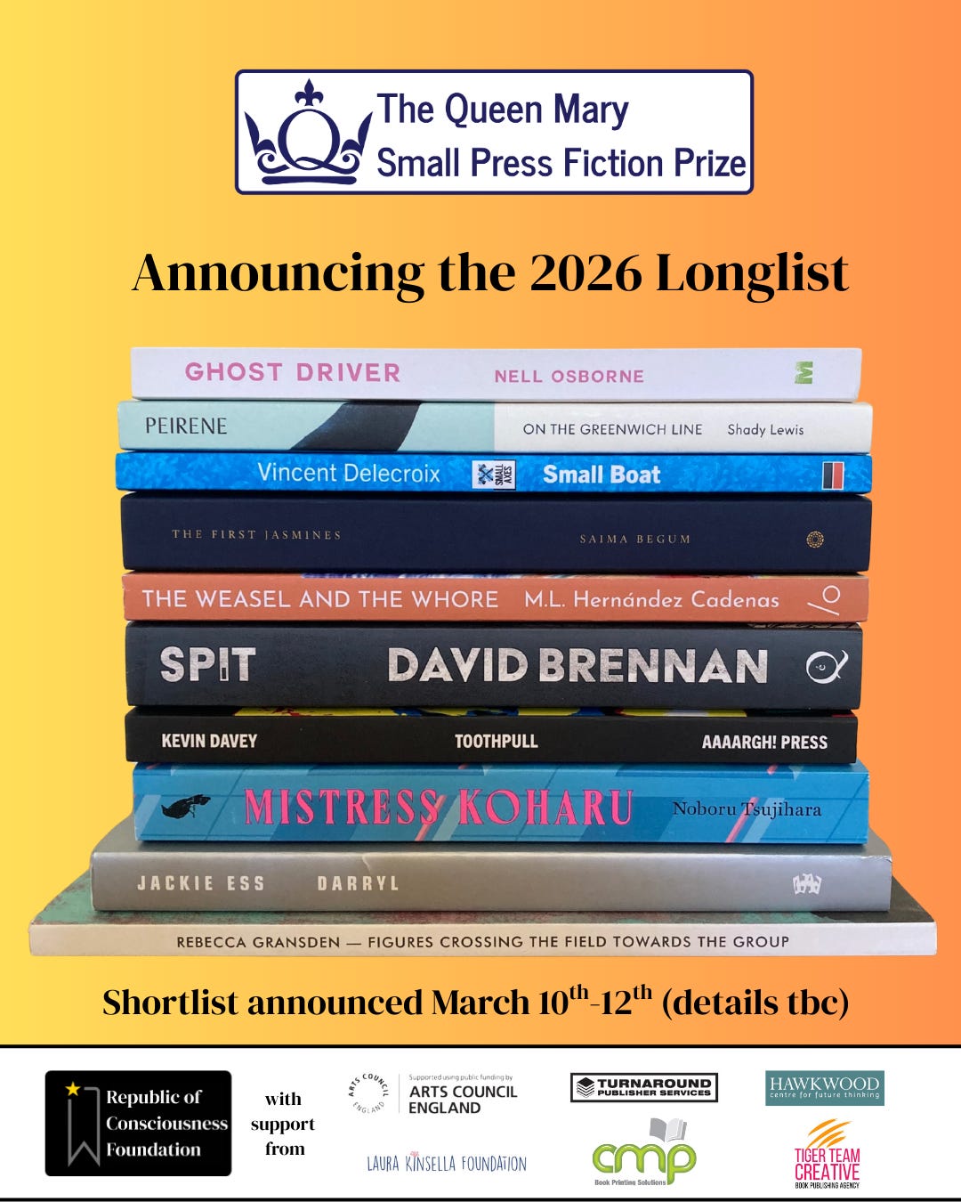 The Queen Mary Small Press Fiction Prize 2026 longlist